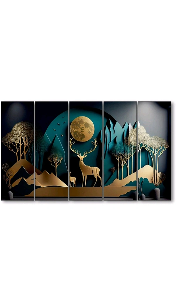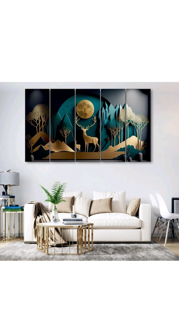 🦌✨ Golden Deer Nature Wall Art ✨🦌 Upgrade your space with this premium 5-frame wall painting! Elegant design | Stunning gold-on-black finish | Big Size – 48 x 28 inch 🔸 Perfect for Living Room, Hallway, or Office 🔸 Multiple Frames – Lightweight & Easy to Install 🔸 Long-lasting print quality